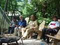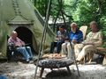 versteckt liegenden Tipi, nur Georg, Betti, Uschi und Gunter
