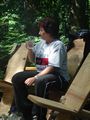 Sitzvorrichtung aus zwei Brettern. In dem sehr versteckt