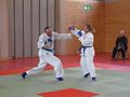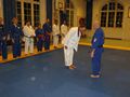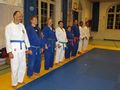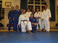 oder „was lange währt, wird endlich gut …“ Nach intensiver Vorbereitung hat sich unser Ralf Dietrich entschlossen, an der ersten landesweiten Gürtelprüfung des JJVB zum 1. KYU-Grad (Braungurt) in Germering teilzunehmen. Bereits um 09:00 Uhr stellten sich die sieben Gürtelaspiranten der Prüfungskommission mit Michael Guttner und Darian Dragut, da anschließend noch zwei DAN-Prüfungen (1. – 3. DAN) abgehalten wurden. Zusammen mit den Prüflingen aus Germering und Esting ging’s dann gleich zur Sache. Über Bewegungsformen, Falltechniken, usw. arbeiteten sich die Braungurtanwärter bis hin zu den freien Anwendungsformen durch das Programm. Immer unter den wachsamen Augen der beiden Prüfer. Hier zahlte sich die intensive – und nicht immer einfache Vorbereitung voll aus. Ralf konnte sich gegenüber seiner Trainingsleistung sogar noch steigern, sodass er ein ausgezeichnetes Ergebnis erzielte. Wieder einmal hat sich herausgestellt, dass die Zeit von Prüfung zu Prüfung eben keine „Wartezeit“ sondern „ intensive Vorbereitung“ ist. Dass gegen Ende der Prüfung unserem Ralf dann die Luft knapp wurde, ist nicht verwunderlich. Er hat wirklich alle Register gezogen. „Gefahr für Leib und Leben“ bestand aber nicht, da die Prüfung auch unter den wachsamen Augen unserer Susanne (Dr. Steinlein) ablief (nur für Insider: Im schlimmsten Fall hätten wir Ralf vereist und für die Nachwelt erhalten … ). Dickes DANKE an dich, „Dr. Susanne“ !!! An dieser Stelle auch noch ein herzliches Danke an Sepp, Alexeij und Alex, die in dieser Zeit zum Teil die Trainingsbetreuung für die restlichen „Mattenfexe“ gewährleisteten. Ralf, dir nochmals einen herzlichen Glückwunsch zu einer ausgezeichneten Prüfung. Weiter so. Bericht: Klaus Röhler |