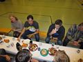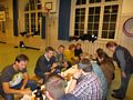 Kurz vor Weihnachten war es dann wieder einmal Zeit, das Treiben auf der Matte ruhen zu lassen und sich stattdessen im Dojo gemütlich bei Glühwein und Gebäck einzufinden. Nachdem der Prüfungsstress sich gelegt hatte, konnten wir beruhigt zum „gemütlichen Teil „ übergehen. Neben den langjährigen Vereinsmitgliedern waren auch unsere Neuzugänge anwesend. Die Vereinsführung organisierte nicht nur Getränke, Brezen und Gebäck, sondern hielt, dank zweier Kochplatten, auch noch heiße Wiener und heißen Glühwein (zusätzlich Alk-frei !!) bereit - Herzlichen Dank hierfür, besonders an Klara und Roman! Unser Vorstand, Roman Meyer, beleuchtete mit seiner Rede nochmals die Jahresereignisse wie Nachtwächter-Tour, Stützpunkttraining, Lehrgänge, Bayernseminar und nicht zu vergessen, die neuen Graduierungen. Hier auszugsweise das Protokoll zu Roman‘s Ansprache: Ralf nahm beim Bayernseminar an der Dan-/Kyu-Vorbereitung teil. Er wurde am Samstag den 07.12.2013 in Germering bei der Prüfung zum 1. Kyu mit dem braunen Gürtel belohnt…., seine gezeigten Leistungen waren hervorragend – herzlichen Glückwunsch!! Corinna erhielt vom JJ-Landesverband Rheinland-Pfalz in Anerkennung ihrer Verdienste um den JJ-Sport den 4. DAN verliehen - herzlichen Glückwunsch! An dieser Stelle, Dank an unseren Trainer und Freund Klaus Röhler für die guten Trainingseinheiten und Ratschläge zur Technikverbesserung! Dank gebührt auch unserer Heidi, welche leider im Jahr 2013 gesundheitsbedingt nicht so oft bei uns war, aber wenn, sich bei Fragen zur Ausführung von Techniken immer um uns kümmert… Ein weiterer – unverzichtbarer – Teil des Trainerteams unseres Vereins ist unser „Sepp“. Er steht jedem „Schüler“ pragmatisch und ohne Kompromisse mit Rat und Tat zur Seite und gibt Ihm Tipps, die Ausführung der Technik noch realitätsnaher zu gestalten. Eine Aufstockung unseres Trainerpools haben wir mit Alexeij und Alex ( Fasanerie ) gewonnen! Beides hervorragende Techniker. (Ausführliche Berichte zu den Stichpunkten unter der Rubrik „Bilder“ nachzulesen) Zu den bereits etablierten JJ-Sportabzeichenträgen hat sich nun kurzfristig vor Jahresende noch unser Alexeij gesellt – auch hier herzlichen Glückwunsch. Unsere ehemalige Schriftführerin Beate Zankl wurde für ihre 20-jährige aktive Mitgliedschaft geehrt - DANKE, Beate! Auf Initiative von Alexeij und Alex entstand ein besonderes T-Shirt-Kunstwerk für Klaus (siehe Fotos). Kann man nur sagen: Top gedacht – top gemacht (hier ein herzliches DANKE von Klaus! Habe mich riesig gefreut und bin stolz auf euch). Es war ein schöner Abschluss des Jahres 2013. Danke an euch alle, die ihr zum Gelingen dieses Jahres beigetragen habt. Alles Gute, viel Glück und Gesundheit für euch, eure Angehörigen und Freunde wünscht der Verein. Wir freuen uns auf ein gutes 2014 mit euch. Bericht / Bilder: Klaus Röhler |