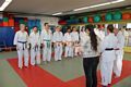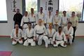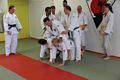 Nach insgesamt 5 Stunden, mit zwei kurzen Pausen, war es geschafft. Die Prüfer hatten sich ein Bild von allen Prüflingen gemacht. Leider konnten die beiden Sportler aus Landsberg nicht überzeugen, wurden ermutigt, weiter zu trainieren und erhielten ausführlich Rückmeldung, um ihre Leistungslücken zu schließen. Anschließend konnte den erfolgreichen 8 Teilnehmern zu ihren neuen Graduierungen gratuliert und die neuen Gürtel verliehen werden. Bino musste seinen Gürtel mit Blut bezahlen, weil er durch einen Treffer auf den „Gewürzprüfer“ - wie Klaus es nennen würde - Nasenbluten bekam. Er wurde professionell von gleich zwei Doktoren versorgt, so dass die Blutung schnell gestoppt werden konnte. Zum Abschluss ließ Klaus noch Flo und Susi spüren, wie viel Last sie nun als frisch gebackene Braungurte zu tragen hätten: Als Untermänner /- frauen einer bunten Pyramide aus allen erfolgreichen Prüflingen. Wir danken